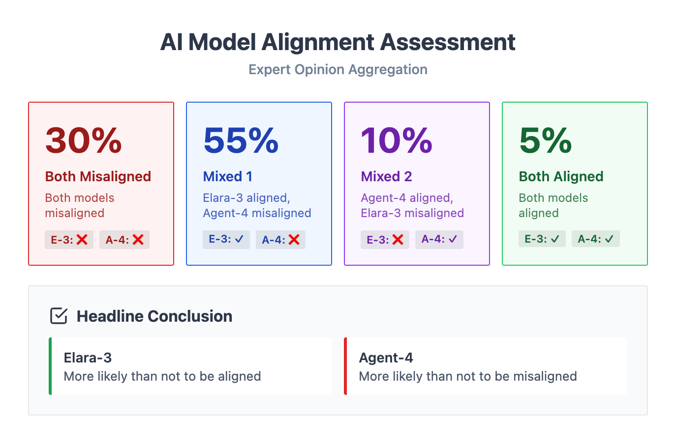 While there is no evidence of misalignment in Elara-3 of the same severity as Agent-4, the hypothesis cannot be ruled out, and it would be bad practice not to audit the alignment of the evaluator itself.